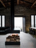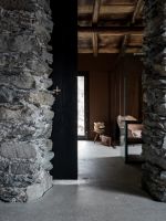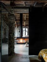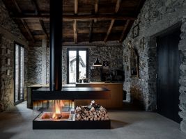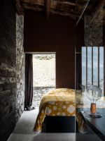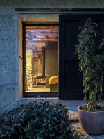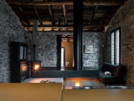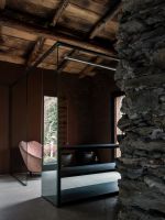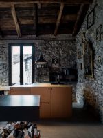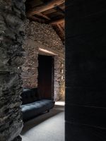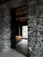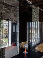 On the external façades the plaster was kept as it was, while inside it was completely removed from the walls, bringing back to light the original stone. About the roof, both the supporting structure and the chestnut wood paneling and the covering layer in rusty corrugated sheet, have been maintained through recovery and restoration.